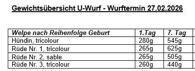 Wir freuen uns über 4 gesunde Welpen - 2 Rüden in tricolour, 1 Rüde in sable und 1 Hündin in tricolour